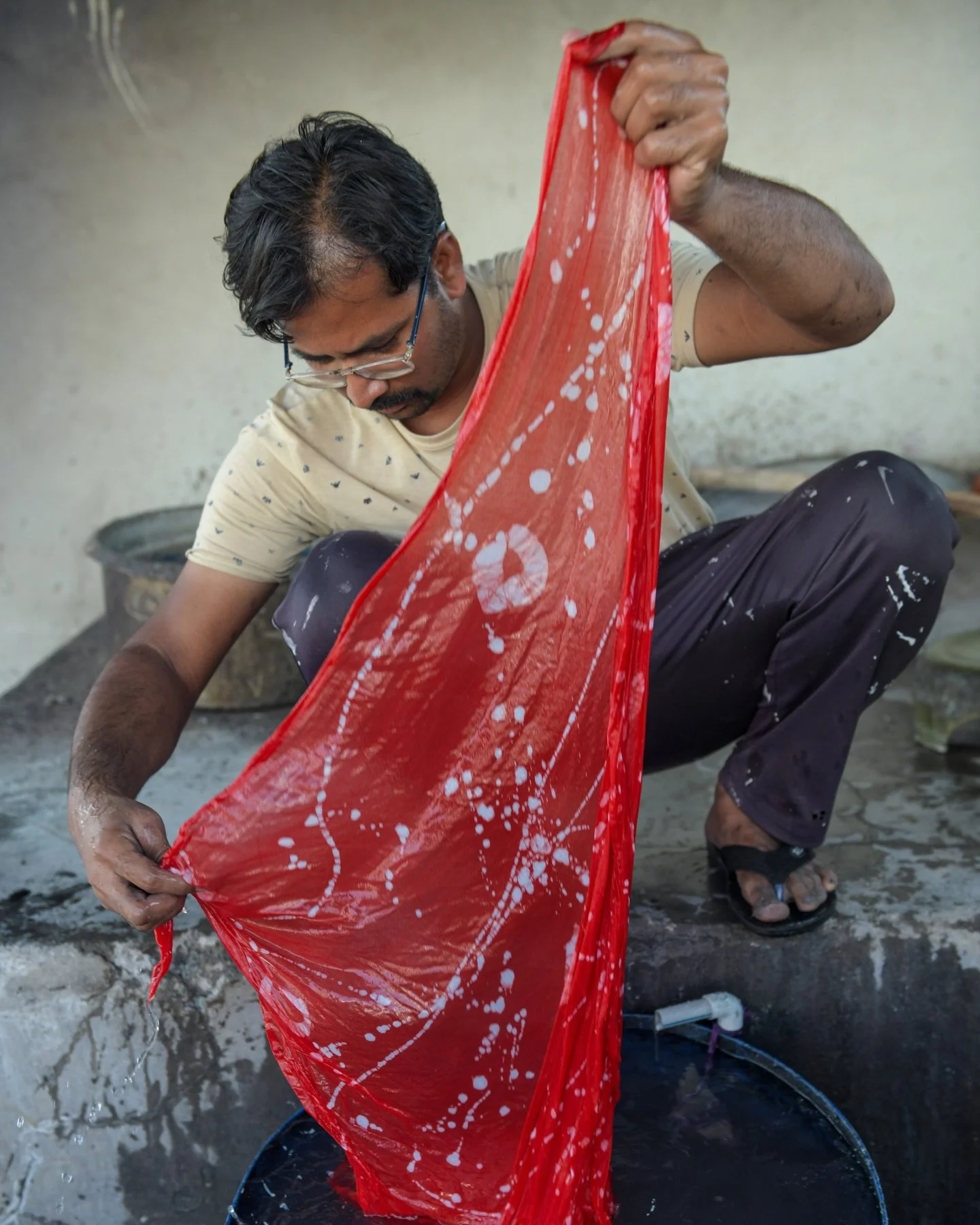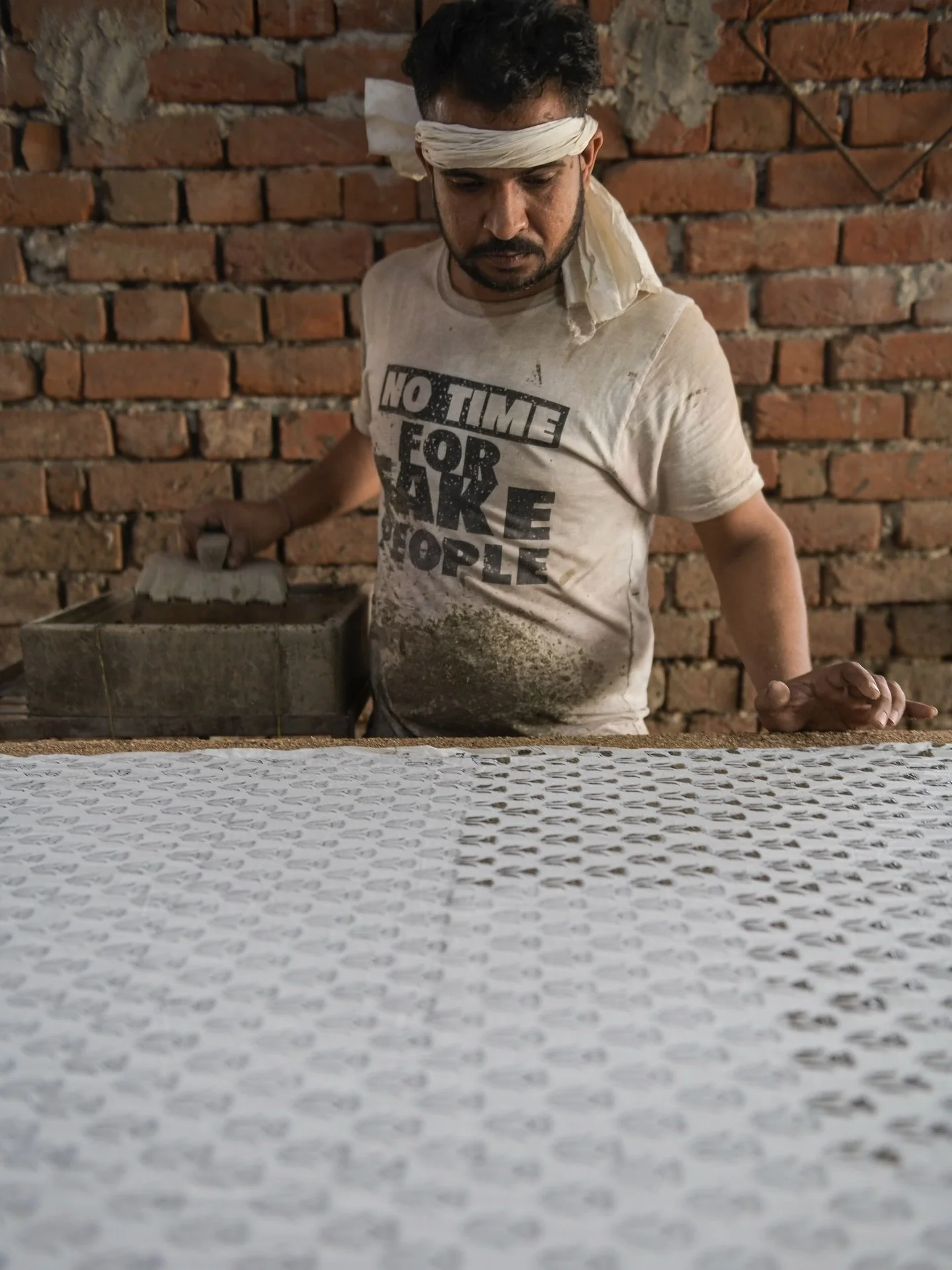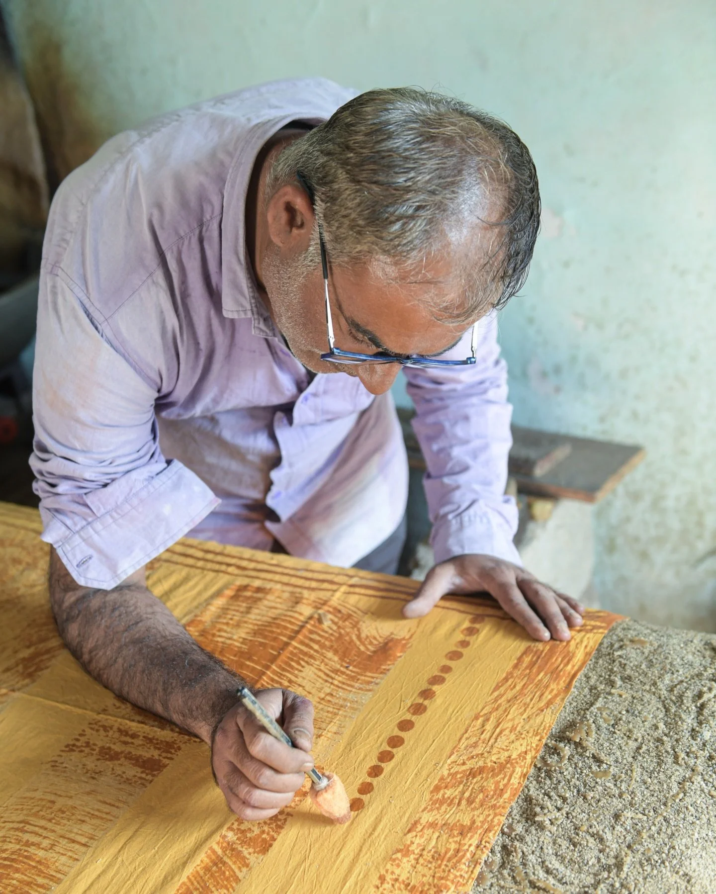 This is a portrait of master printer Mr Prakash Chippa, whom Lizane photographed during workshops with Studio Bagru in Bagru, India. This photograph is on display in the new Atelier in Berlin. Come listen to the stories of the master printers we learn from and work with. Photo Lizane Louw
